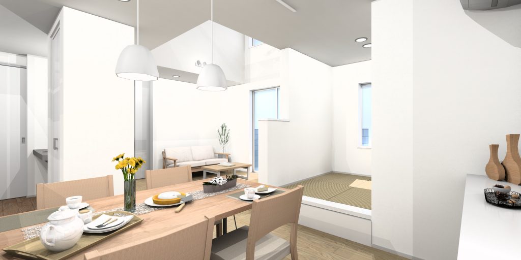 ◎小上がりのタタミコーナーは家族の憩いのスペース