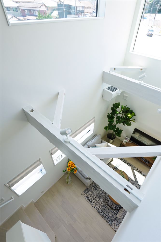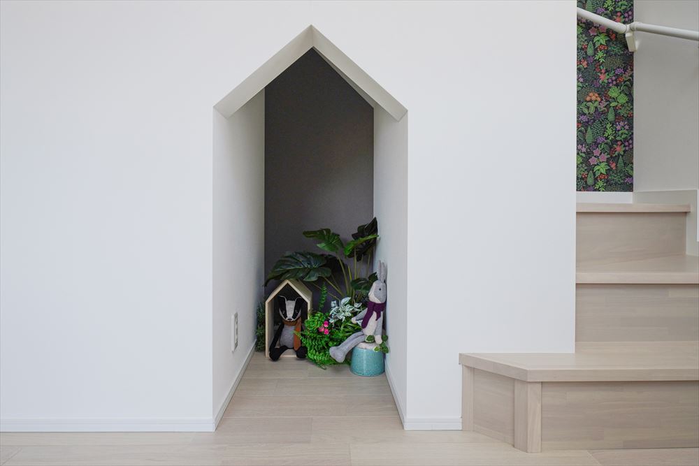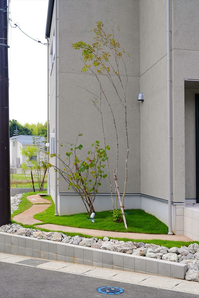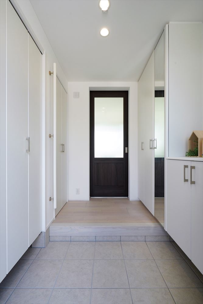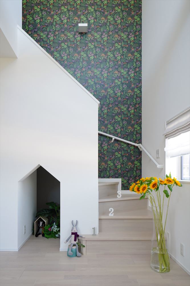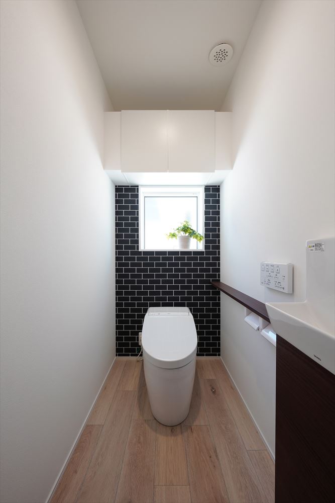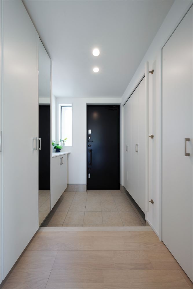 随所に散りばめられた緑と調和した、閑静な街並みにそよぐ風のような佇まいの外観。玄関へ入ると家族が増えても安心の嬉しい収納4箇所を集約。1階リビングにゆったりとしたダイニングテーブルを置けば、アイランドキッチンからリビングへの広がりを演出します。キッチンは建具とともにブラック系で統一。オーク床のホワイト色や白壁とのコントラストで洗練された空間へ。さらにLDKから水回りへは回遊導線でスムースに。その快適さは住むほどに実感できます。