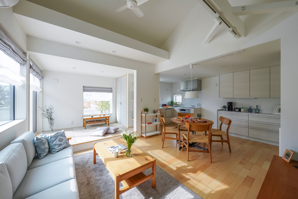 自然豊かな玉湯町に、自然を愛でる暮らしを叶えた春爛漫のお家が完成しました。最大の特徴はL型キッチンやタイルテラスからゆったりと望めるラグジュアリーな花見。保育園から響いてくる子どもたちの楽しそうな声が湯町ならではのほのぼのとしたムードを演出します。並木通りの桜は四季を奏で、まるで自宅と桜並木との境界線が消えたかのような一体感も感じられます。玄関からのリビングと水回りへの動線は2WAYに。お客様をまっすぐリビングに招きながら目立たせずに収納スペースもたっぷり確保。2階には洋室2つに加え大容量の小屋裏収納で季節物などもしっかり収められます。洗練された空間と家族の温もりを紡ぎあわせたお家です。