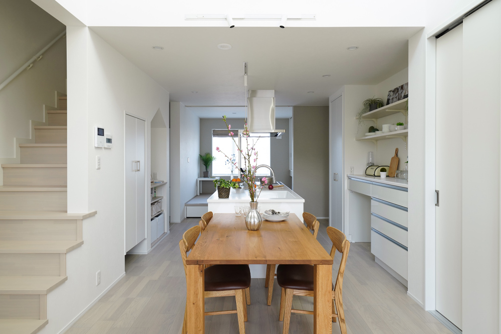 スペースを活用して随所に収納を設け、掃除や片付けが楽になりどこに居ても心地よさを感じられるでしょう。