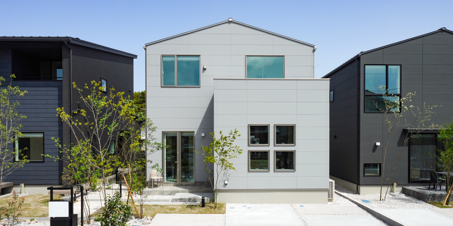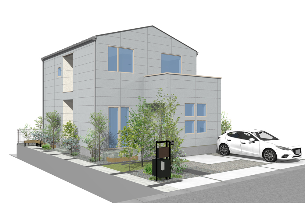 グレーの外壁を使用したスタイリッシュで清潔感のある外観です。