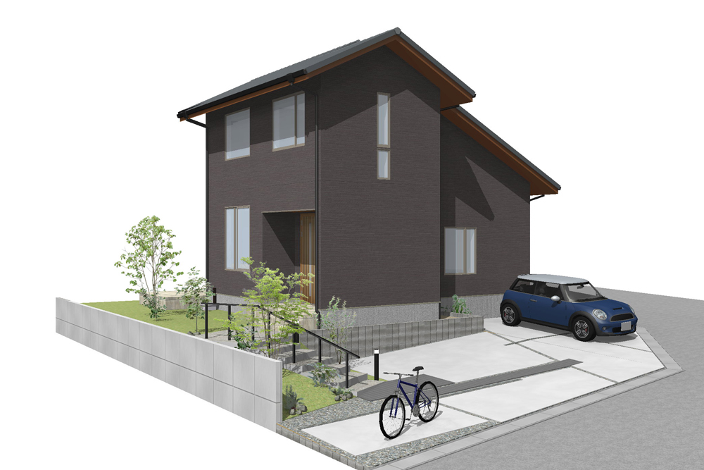 シンプルな切妻屋根と落ち着きのある色の外壁で仕上げました。