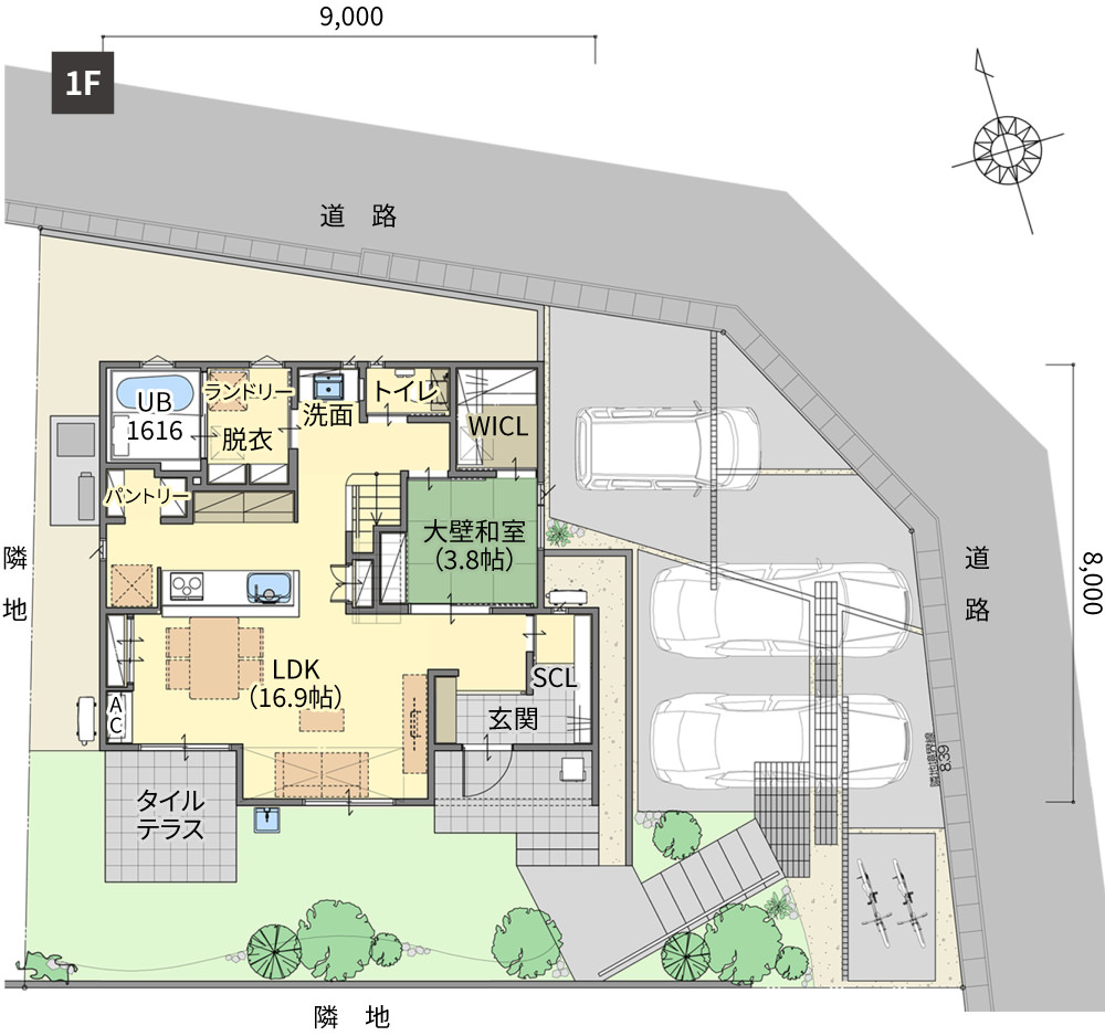メンテナンスがしやすいタイルテラスもあり、BBQやガーデニングなど屋外空間も楽しめます。