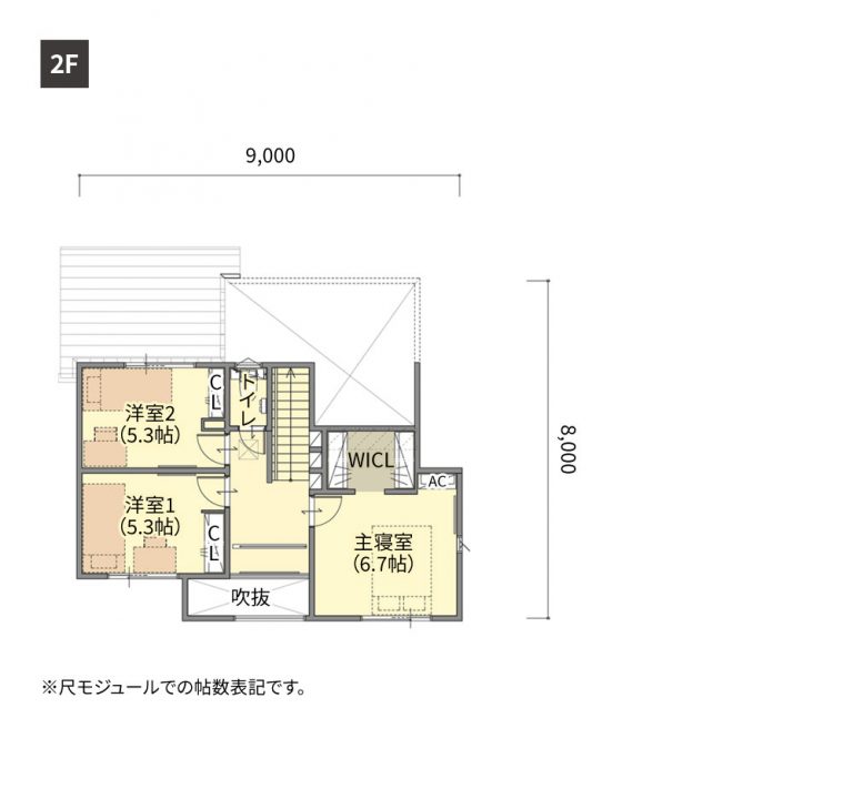1Fの和室は玄関側から入って水廻りへと抜けられる2つの出入り口があります。和室を通り抜ける回遊動線で空間を自由に行き来し、暮らしがより便利になるでしょう。