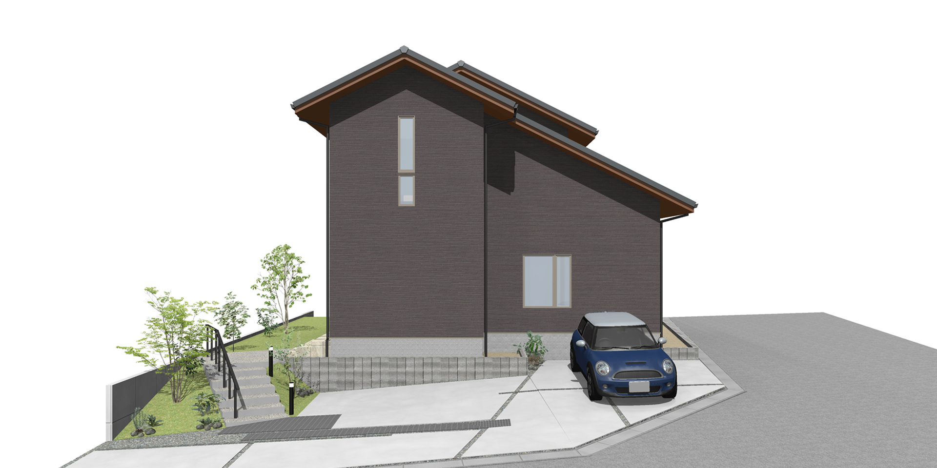シンプルな切妻屋根と落ち着きのある色の外壁で仕上げました。