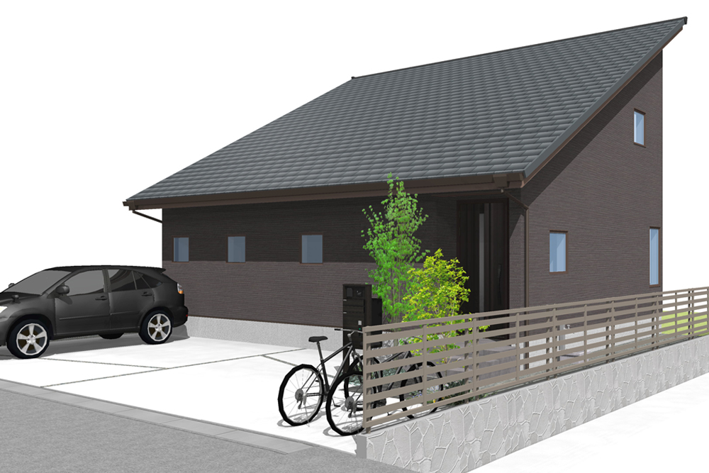 落ち着いた雰囲気の外観はブラウンで統一されており、やわらかい雰囲気を銀黒色の屋根が引き締めてくれます。吹き抜け+大きな吹き抜け窓のあるリビングダイニングは優しい光が降り注ぎ、家族の生活をより明るいものにするでしょう。現在から未来へずっと暮らしやすい平屋のような間取りと動線が家族に寄り添い続けます。