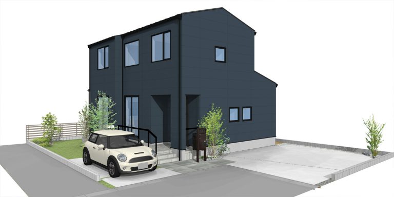 ネイビーの外観と白の内観 シンプルさが心地よい住まい