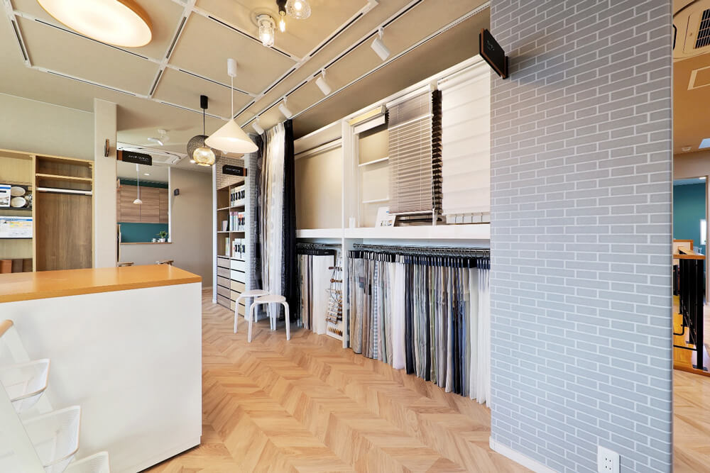 - 壁紙、フロアタイル、照明、カーテンの色選びなど、カタログでは分かりにくいもの。多数の現物サンプルを手にとってお気に入りのコーディネートを実現いたします。