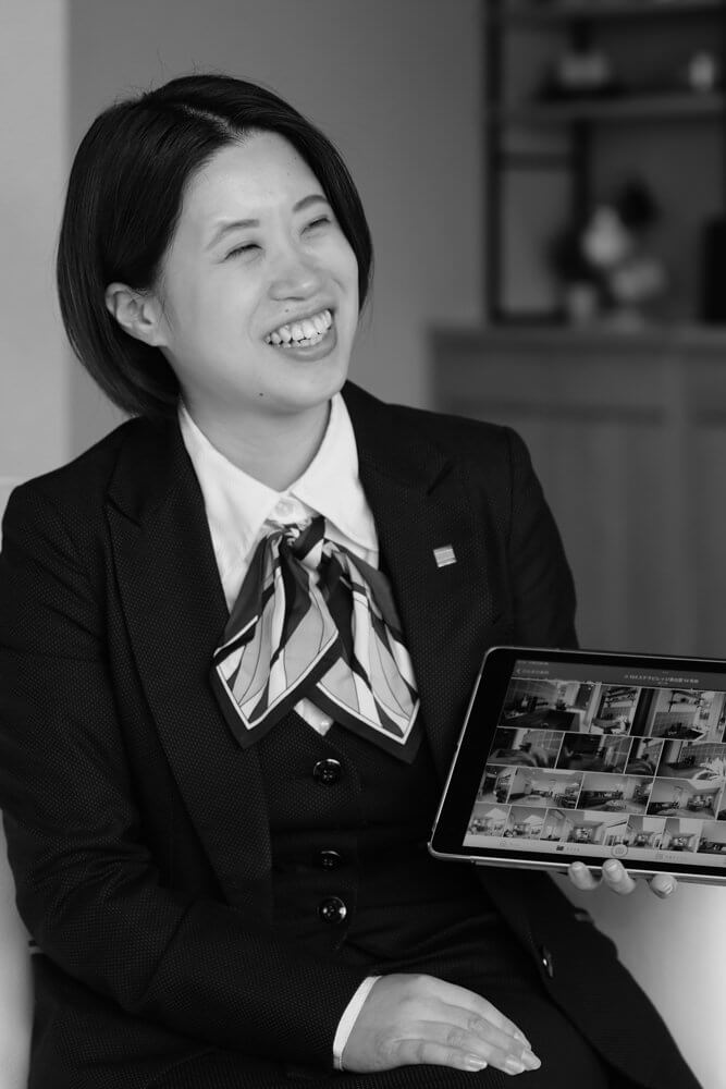- 真っ白なレザーのカウチソファでゆったりと過ごしながら、空間デザインの参考にして頂けるロビー。デジタルサイネージで最新物件の情報もお確かめ頂けます。