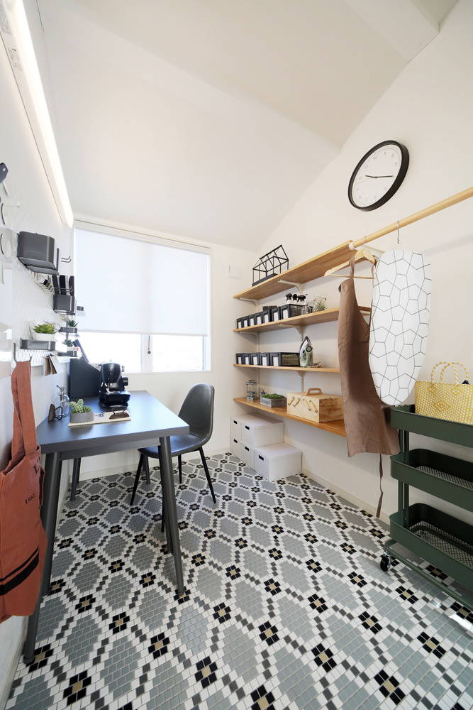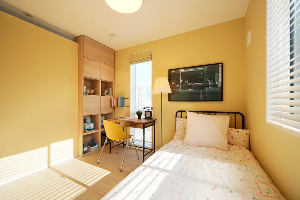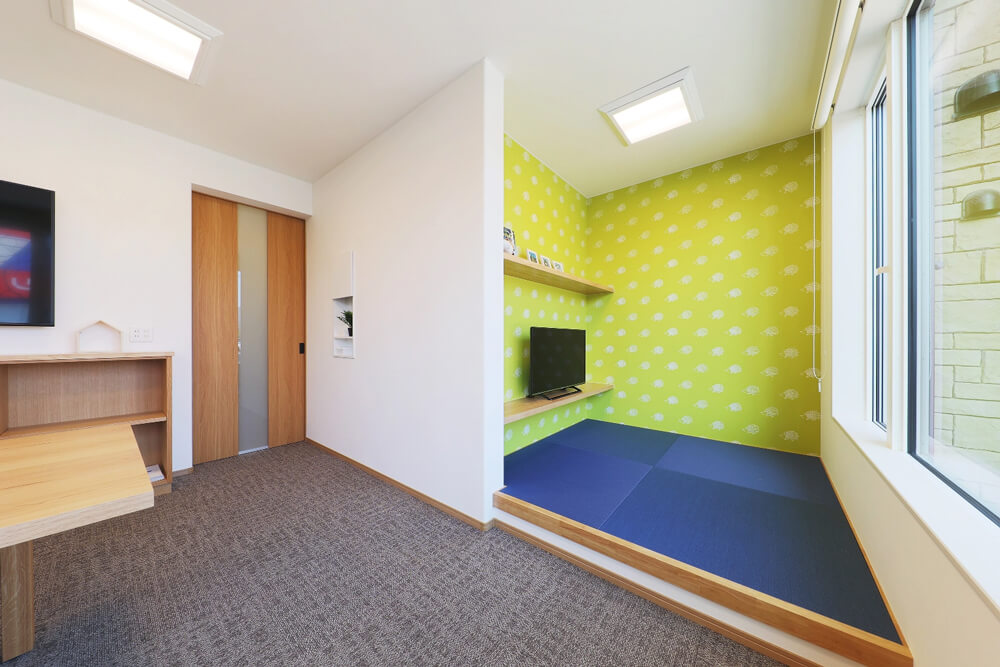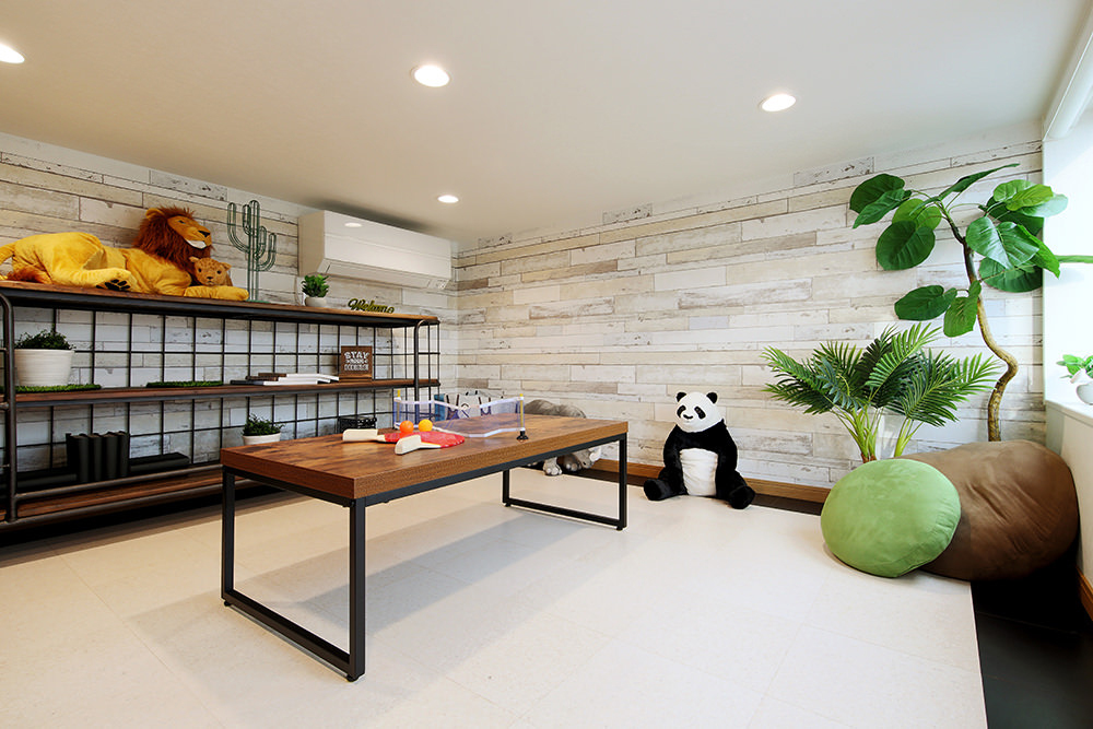 - ゲストルームと併設してキッズルームを設けました。お子様も同じ部屋でアニメを見たり、絵本を読んだり目の届く場所で、打ち合わせができるのでとても安心です。