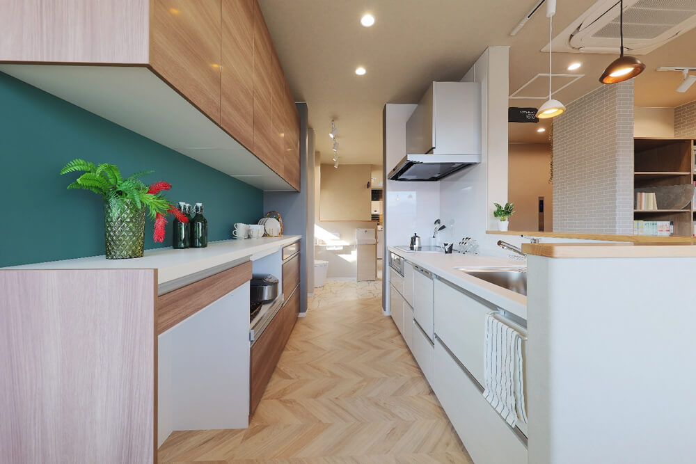 - 住設メーカーの現物が展示してありますのでキッチンパネルの色やカップボードの質感、シンクの長さなど気になる点をその場でチェックできます。