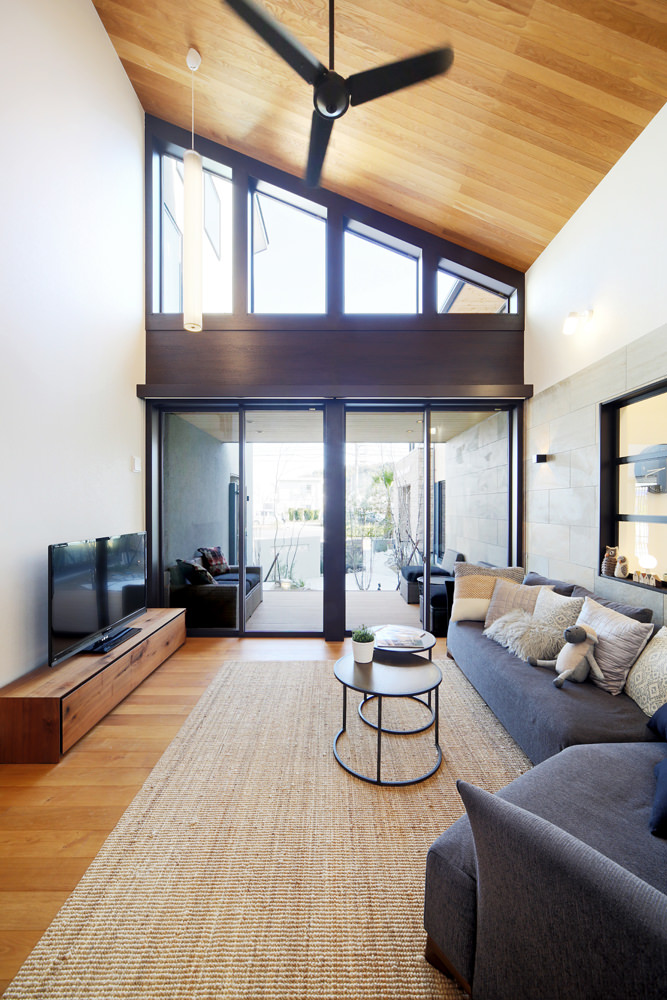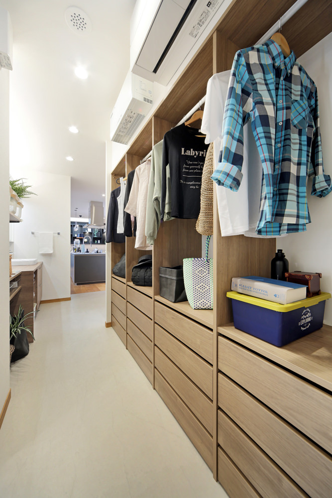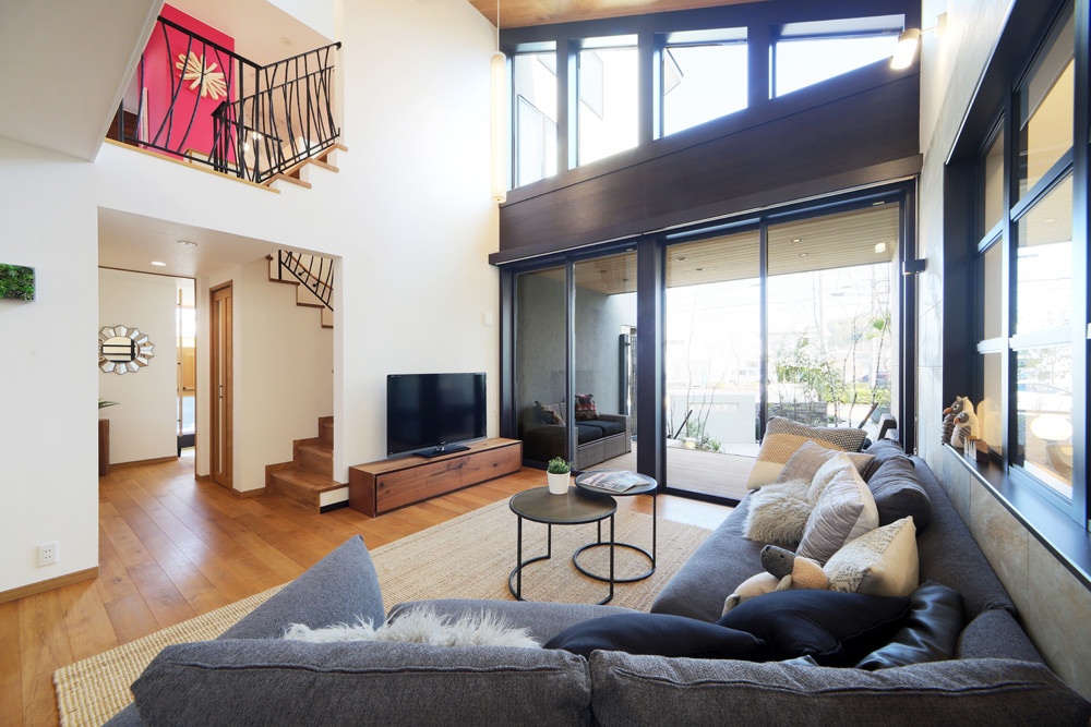 子育て期は忙しいので家族がコミュニケーションを深めるための住空間が大切です。そんな限られた時間のなかで、家族が集い、コミュニケーションを深める場として、家の中心にキッチンのある暮らしを提案します。開放感のある吹抜は2 階との空間的な繋がりを作り、家のどこにいても家族の存在を感じられます。考えられた多くの収納も、家族それぞれの用途に合わせた使い方ができて、とても便利。その他にもリビングと融合し、リゾートのような時間が過ごせるウッドデッキ&テラスや、天候の悪い時にも便利なビルトインガレージなど、家づくりのヒントが多く詰まったモデルハウス「つながる家」。