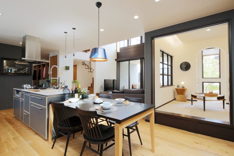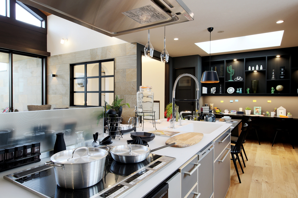 キッチンを中心に家族の生活が見渡せる「つながる家」