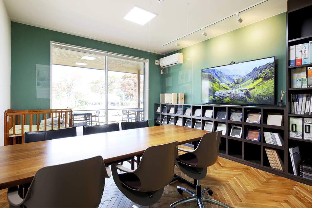 - キッズスペースはお子様と一緒に来場されても安心してゆっくり打ち合わせできるスペースです。スタッフと打ち合わせ中には、お子様はアニメを見たりして退屈することなく楽しく過ごせます。