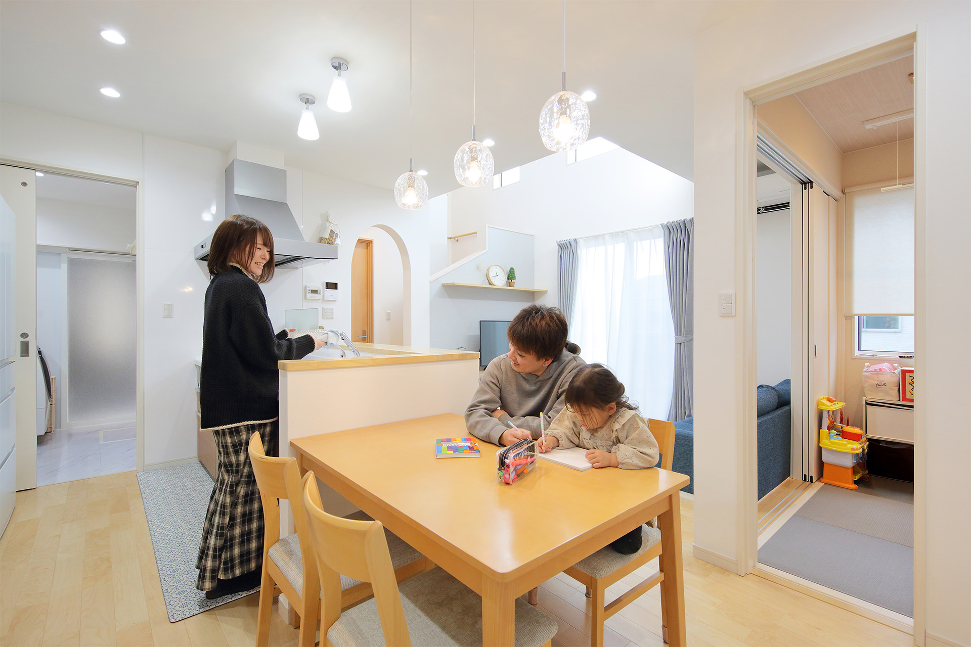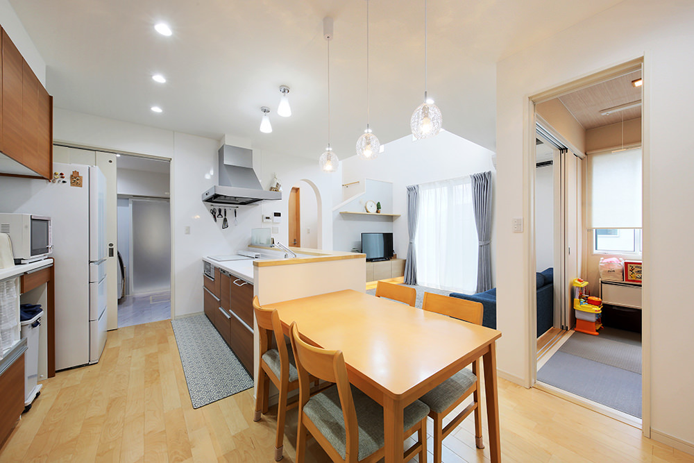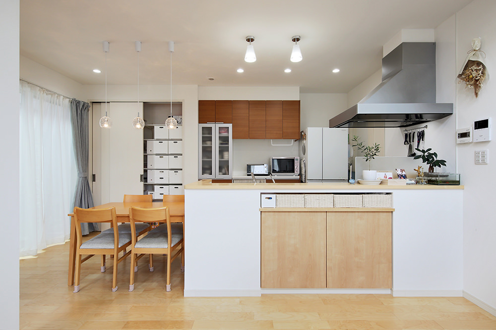 7 シンクだけでなくIHまわりもオープンにし、調理中にリビング・ダイニングを見渡せるように。LDKに一体感を持たせています。