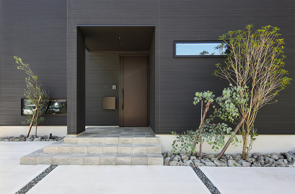 2 計算されたエクステリア。家族と一緒に育つシンボルツリーに癒されながら暮らす。