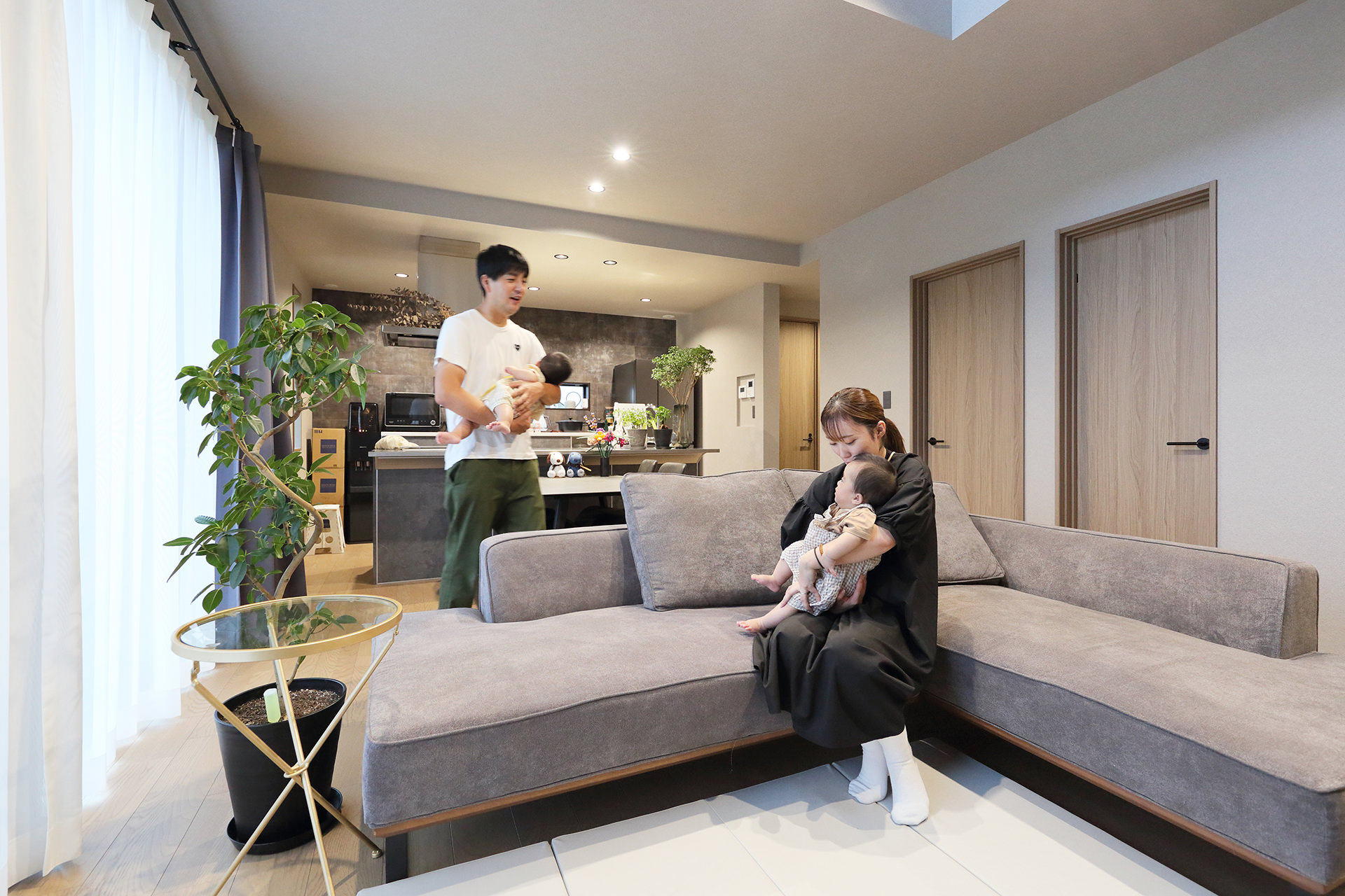 5 キッチンからダイニング、そしてリビングを見渡したワンシーン。