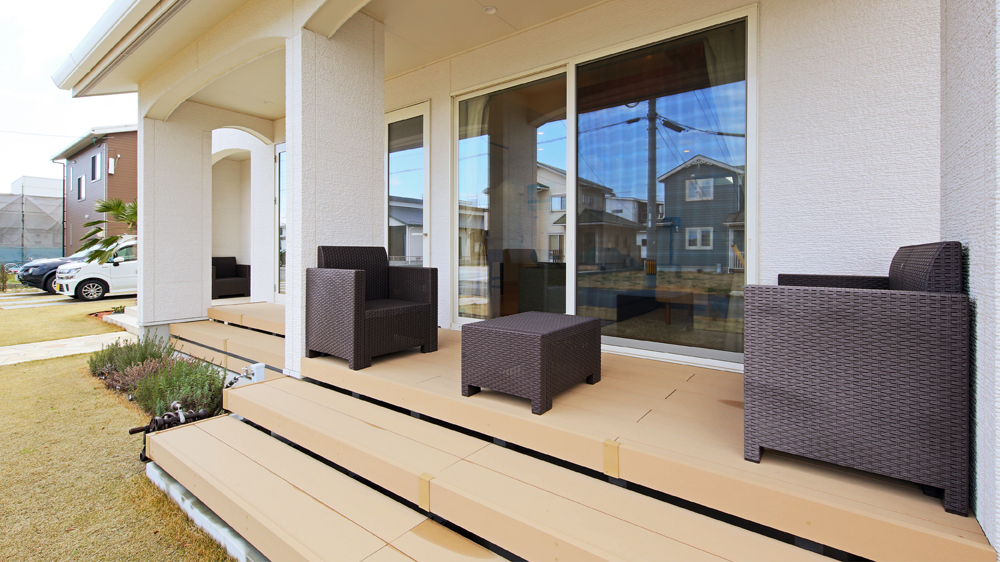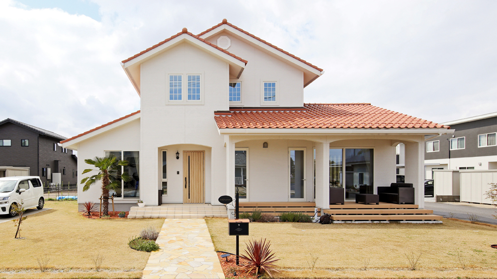 1 鮮やかなオレンジの石州瓦と白い壁がひときわ目を惹く南欧風の外観