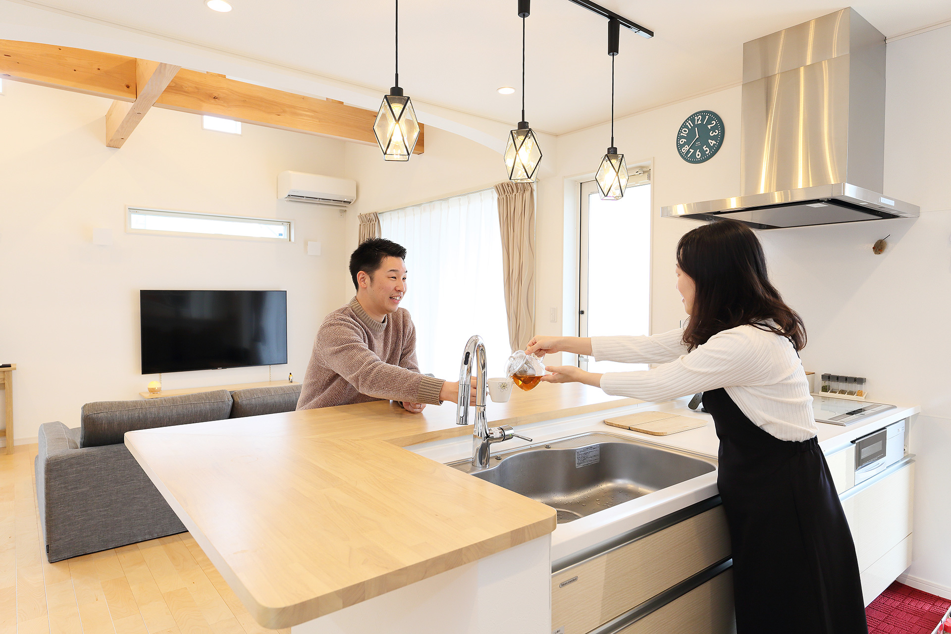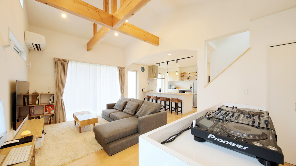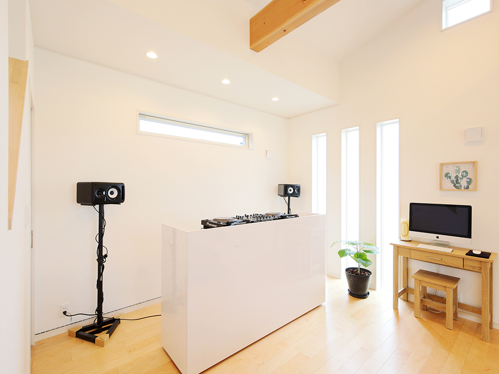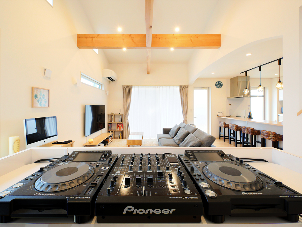 2 リビングの一角に造作したDJカウンター。高気密設計なので音漏れの心配もありません。