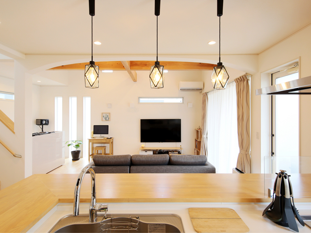 7 白と木目調に統一したリビングダイニング。工夫した設計で広々とした空間に。