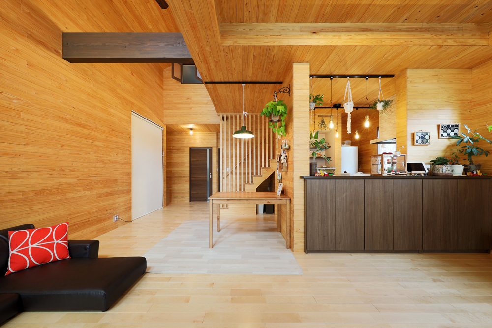 11 空間を生かして吊り下げられた観葉植物や照明が、温もりと安らぎを演出。 12 キッチンには吊戸棚を設置せず、リビングからの奥行きをオープンに感じさせました。