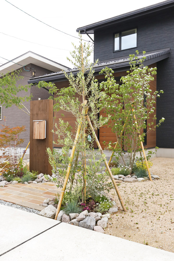 2 大きく育つシンボルツリーに愛らしい花を咲かせる下草を選んだ植栽は奥さまのセンス。