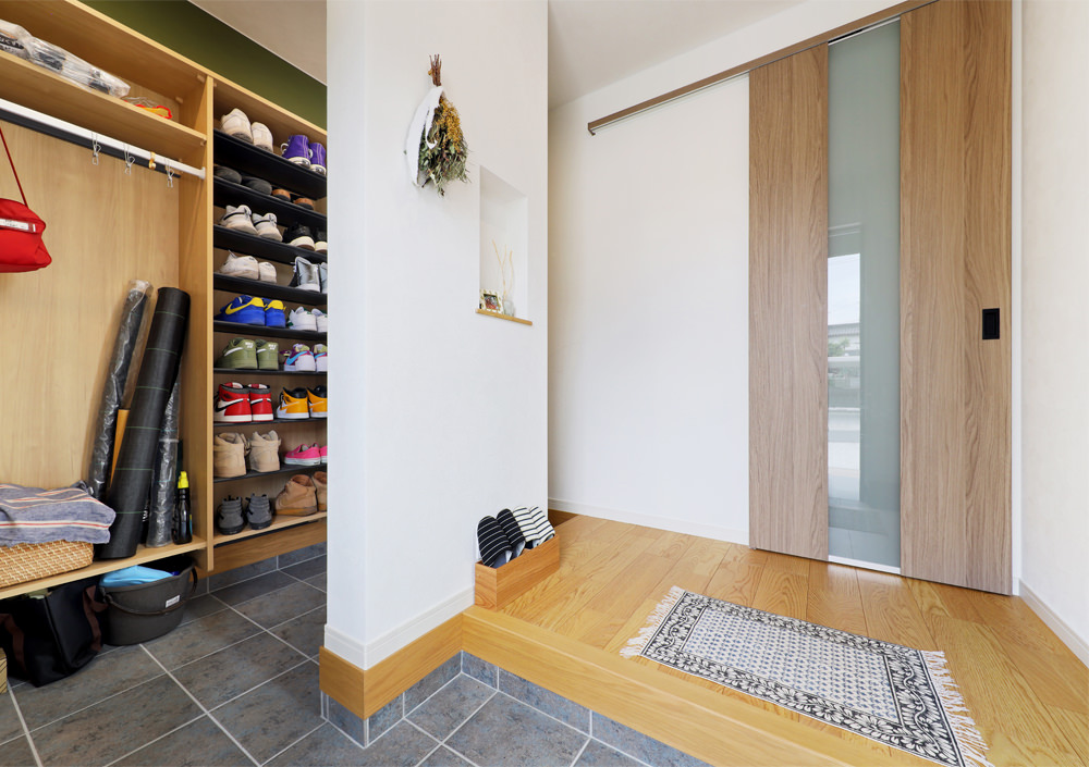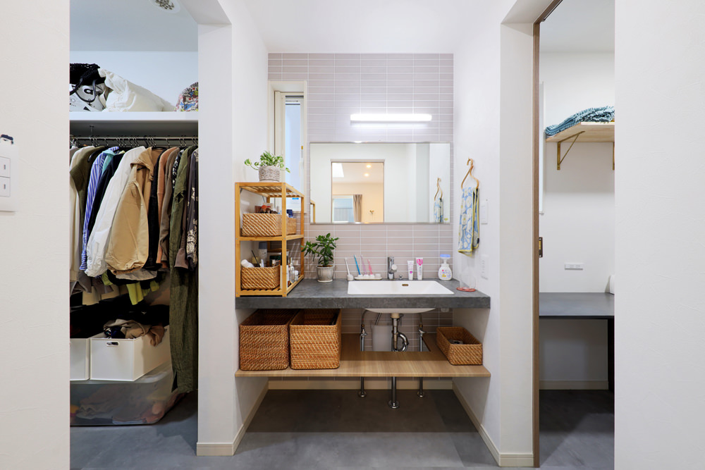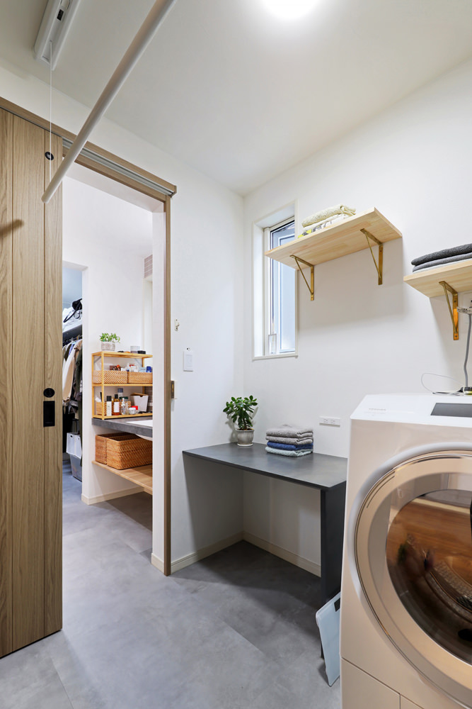 9 ランドリーからファミリークローゼットを直線で結ぶレイアウトは「洗濯物を畳んですぐに仕舞えるように」と考えられた奥さまのプラン。