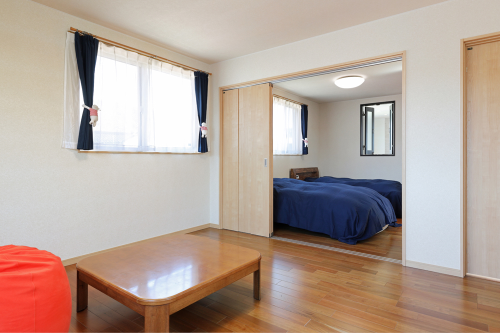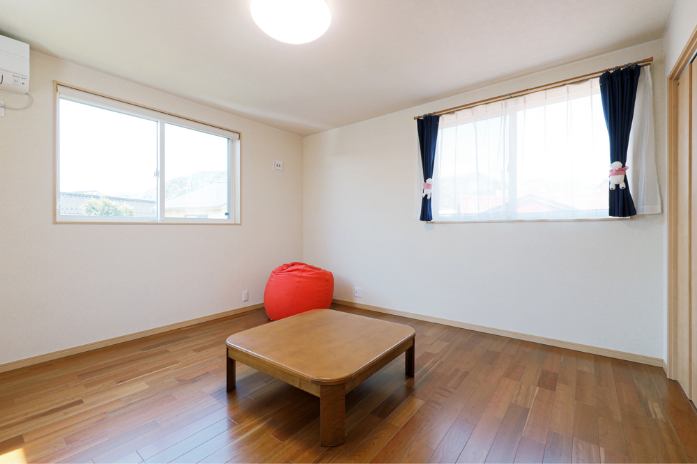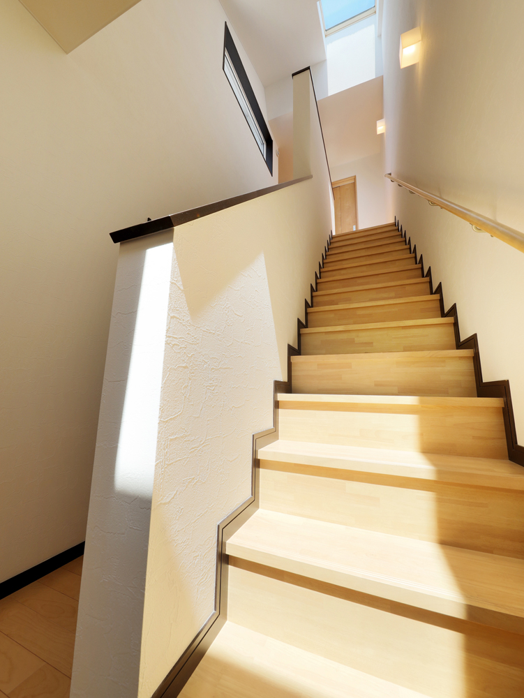 12 階段上に設置した天窓からは日中明るい陽射しが射し込みます。 13 2階寝室の窓を開けると、吹き抜けを通じて薪ストーブの暖気が上昇。家全体を包みます。 14 部屋の中から、夏の風物詩「みなと祭」花火大会を楽しめるよう、2階西側に窓を配置。