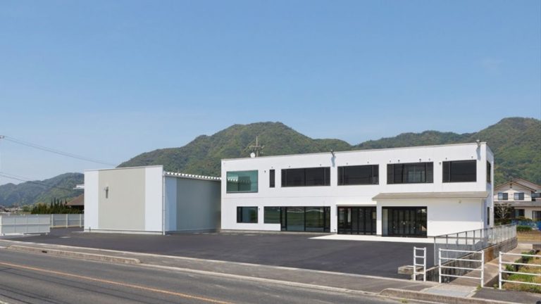 - 障がいのある方々の就労支援事業所であるNPO法人あすのひかりの事務所。事務室や休憩スペースなどのスタッフルームが確保された鉄骨造2階建て。