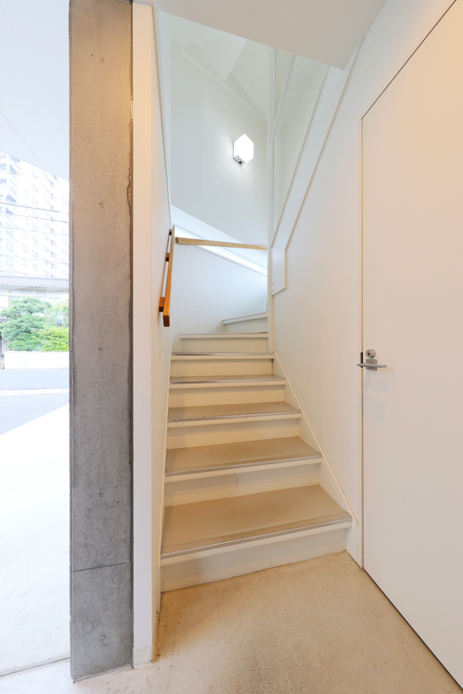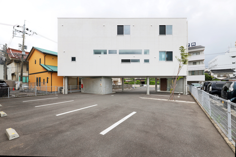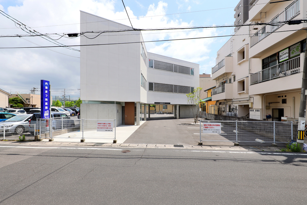 エントランスや駐車場としての1階、受付・待合・診察室などの医院としての2階を含めた鉄骨3階建て。東西に延びる建物の両端それぞれに階段を設け、スタッフ用とお客様用とに使い分けています。