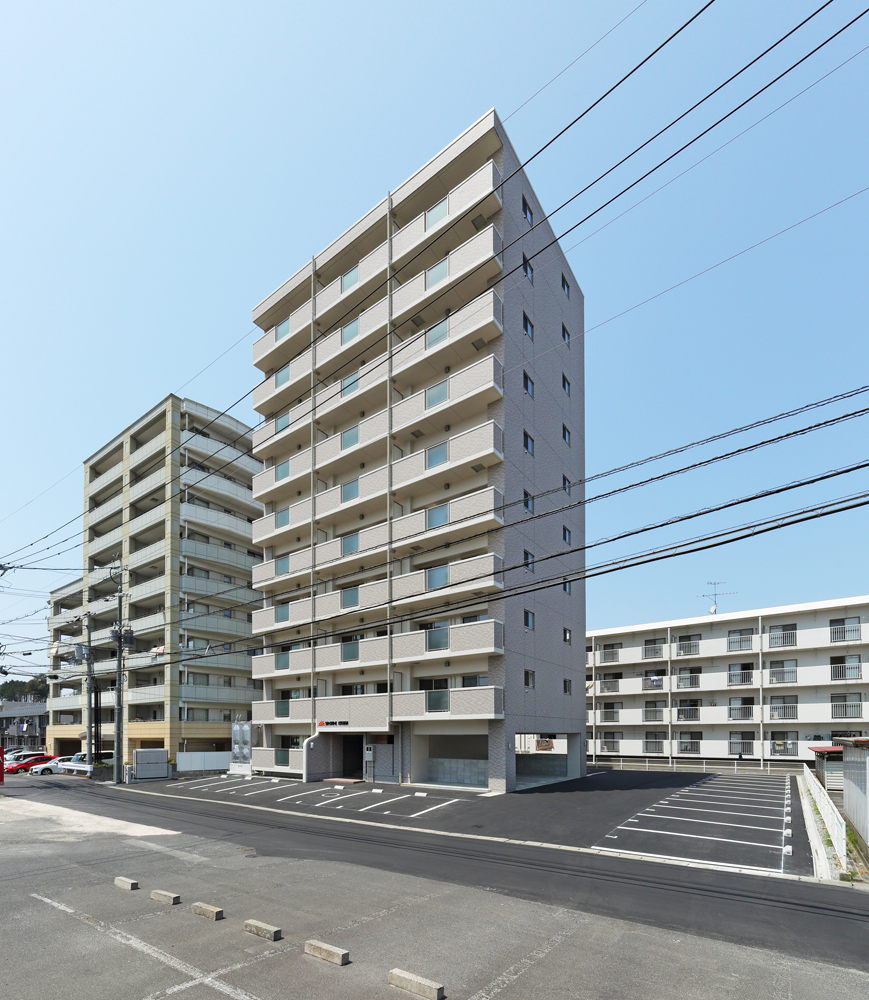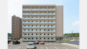 バス・トイレ以外全室エアコン付きの2LDK。総戸数28戸の賃貸マンションです。駐輪場や広い駐車場の他に、宅配ボックス・ダイヤル式ロックのポストやエレベーターも完備しています。