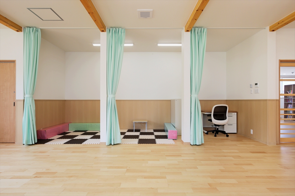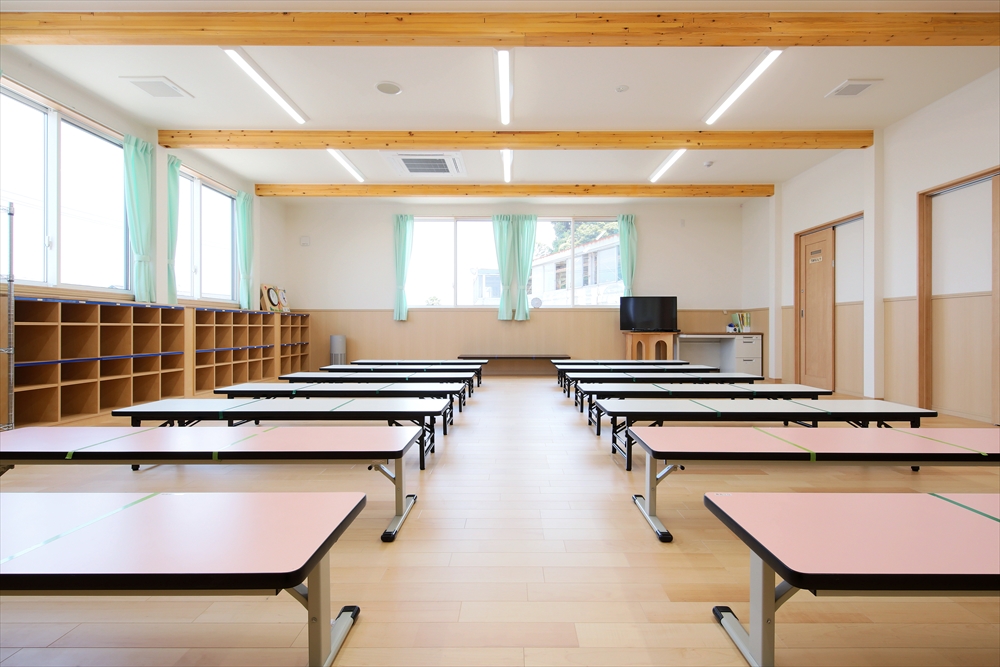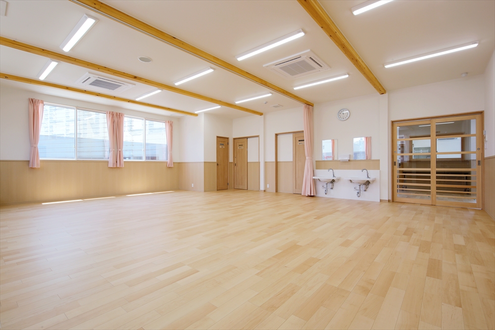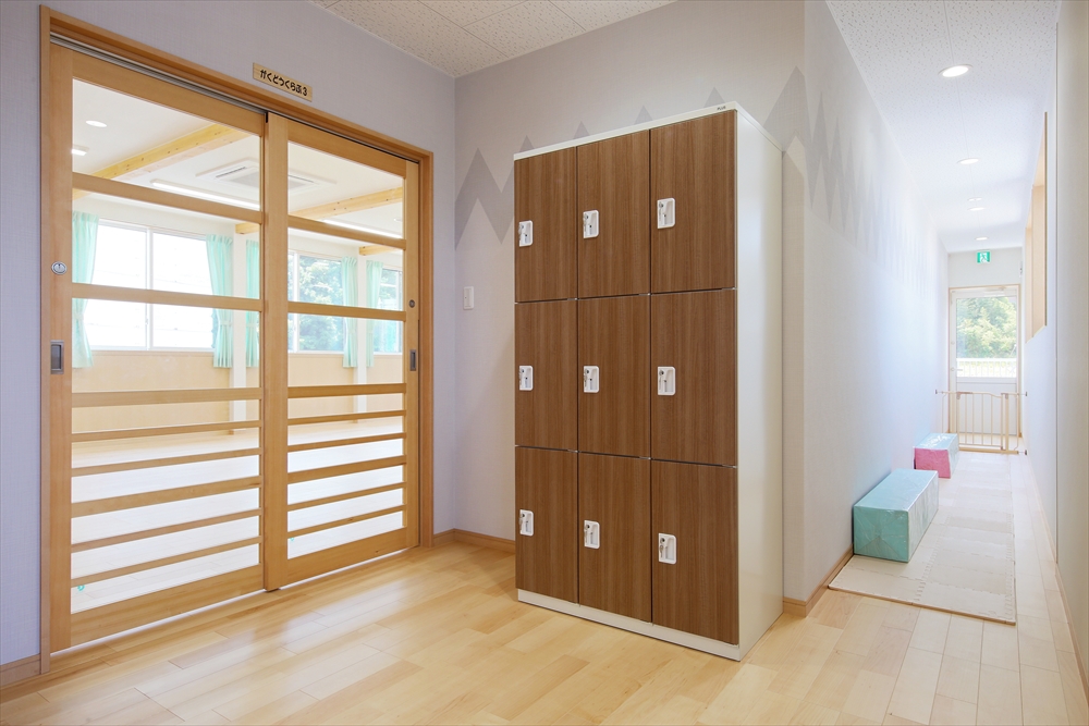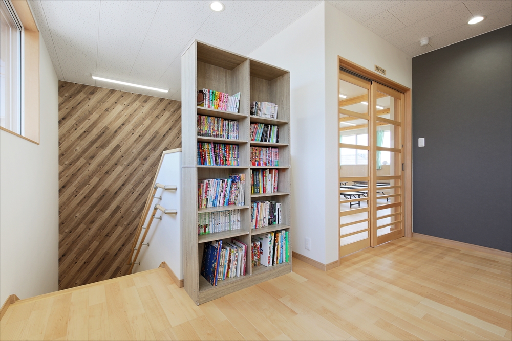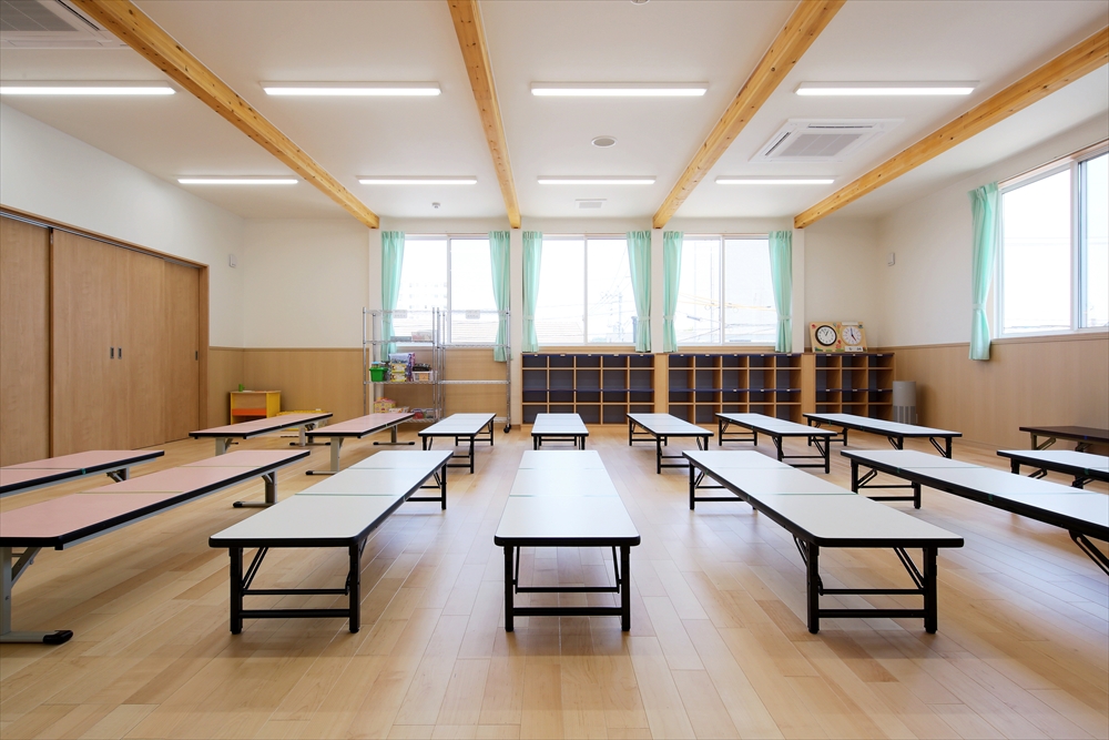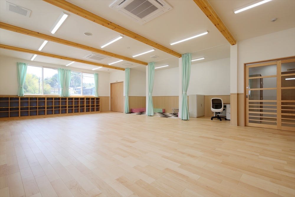 2020年に完成しましたひらぎの保育園にも学童クラブを併設しておりましたが、2号館として別の宅地に新しい学童クラブを新築。子どもを預かる部屋だけなく、スタッフの事務室や相談室を完備。急な体調不良にも対応できる静養室もあり、感染症対策となる手洗い場を部屋内にも設置してある。