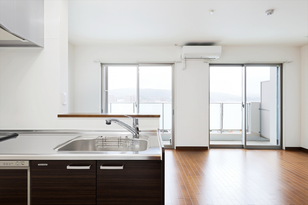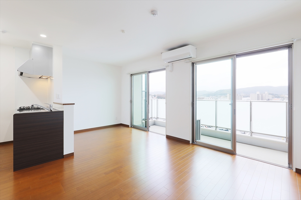 エアコン3台付きの1LDKの賃貸マンションです。借主専用駐車場の他に、オートロック・宅配ボックス・ダイヤル式ロックのポスト・トランクルーム等があり部屋以外も設備が充実しています。雨に濡れない屋内階段やエレベーターを完備しています。高所階では水郷祭も楽しめる、景観の良い建物です。
