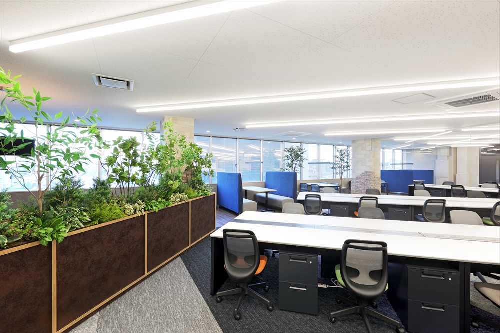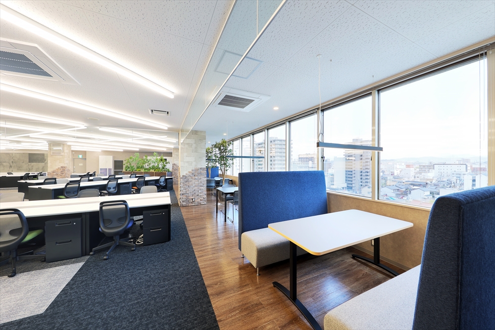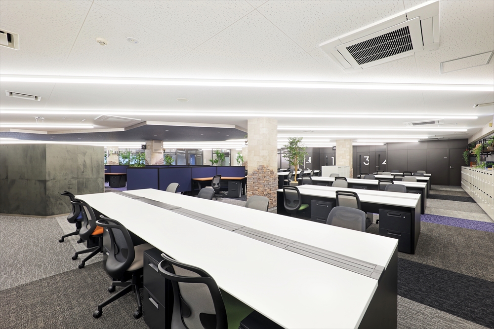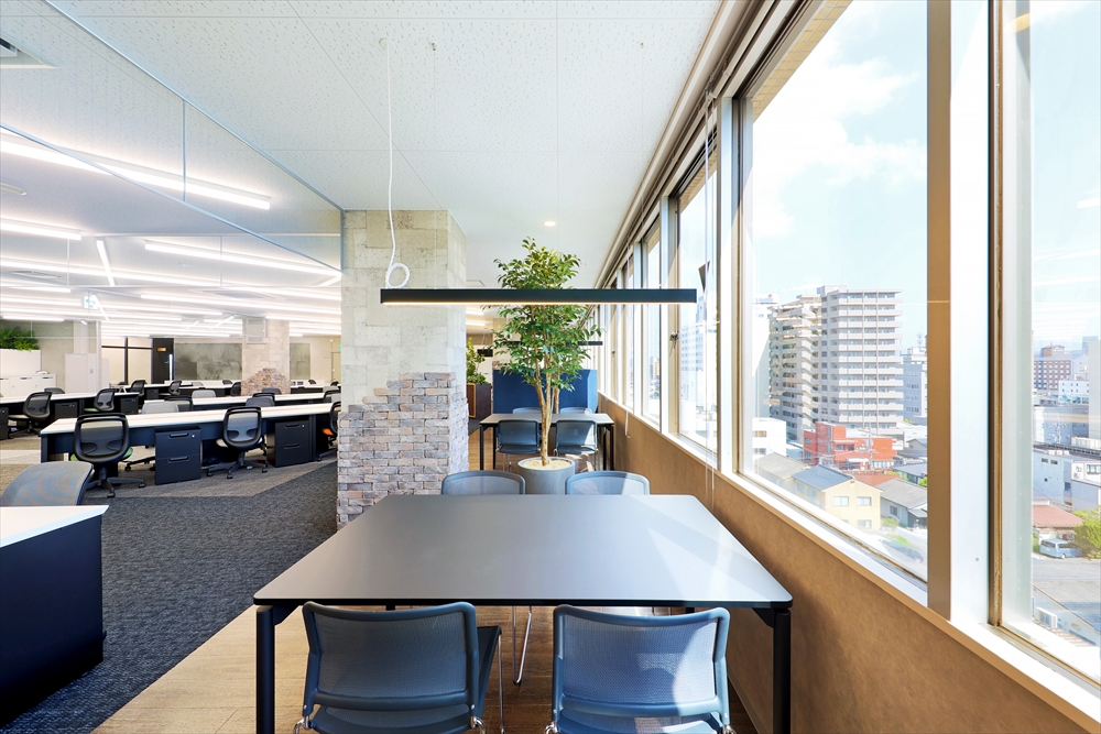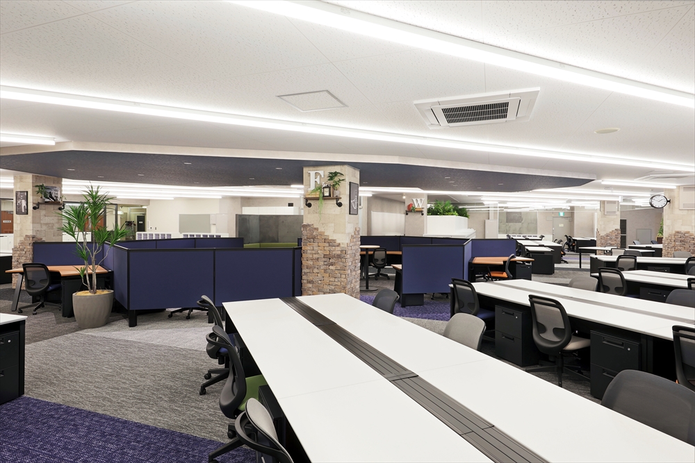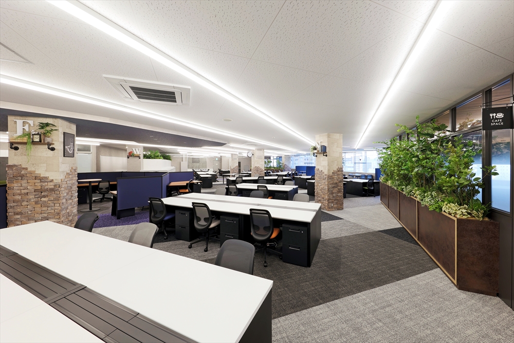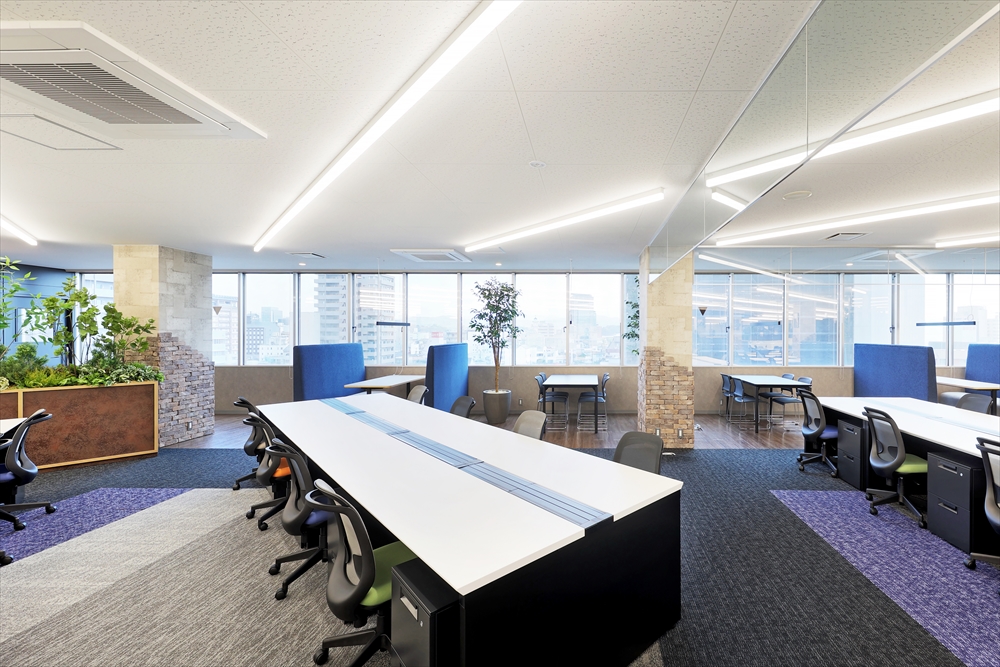 フリーレイアウトデスクを採用したどこでも仕事ができるオープンなスペースと、取材や会議などで利用するクローズドなスペースを設け、明るく快適な仕事場を作り出している。