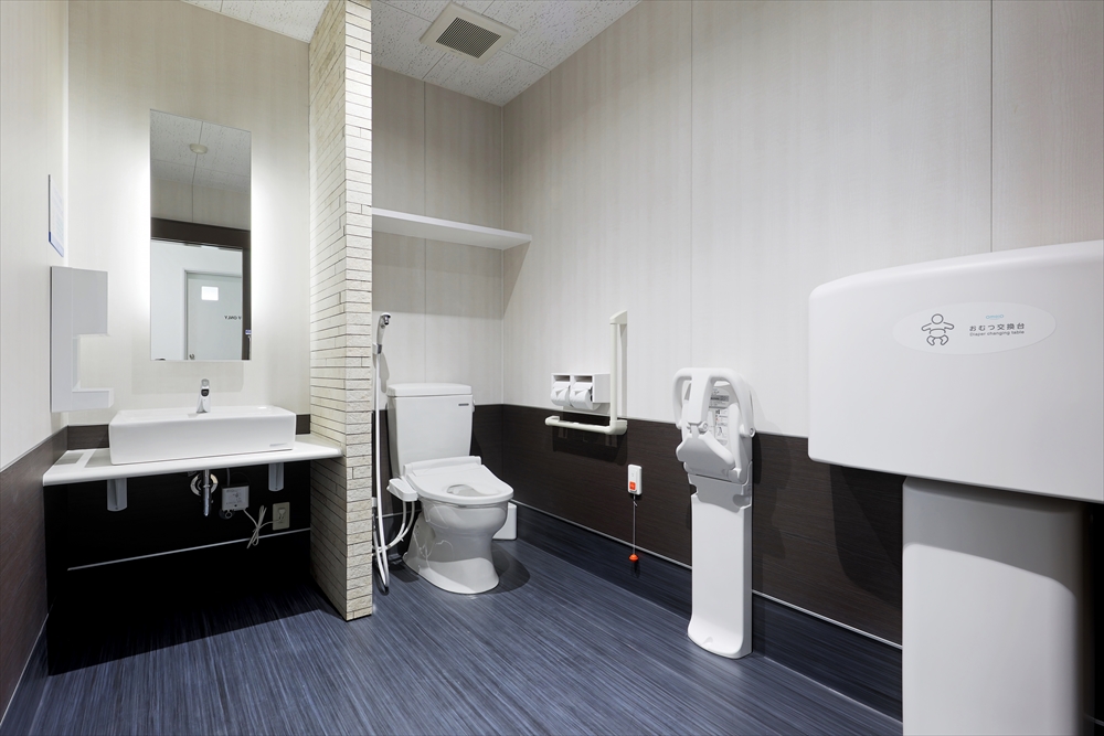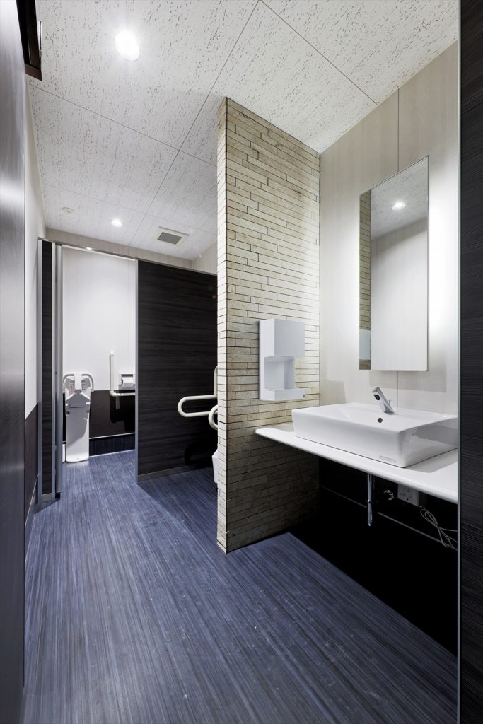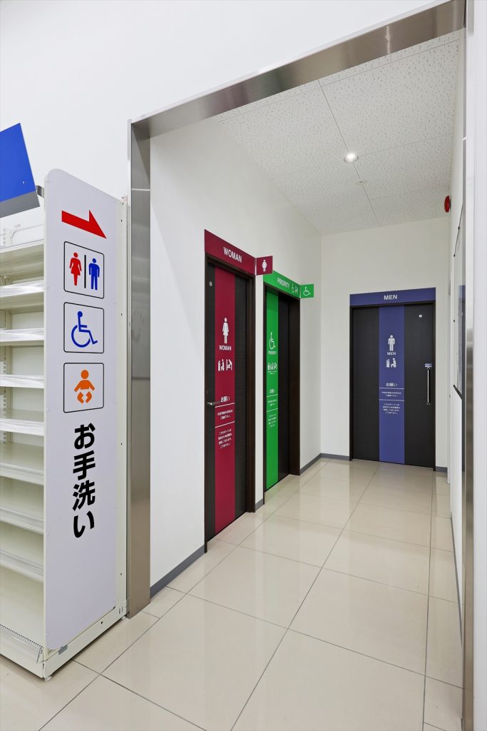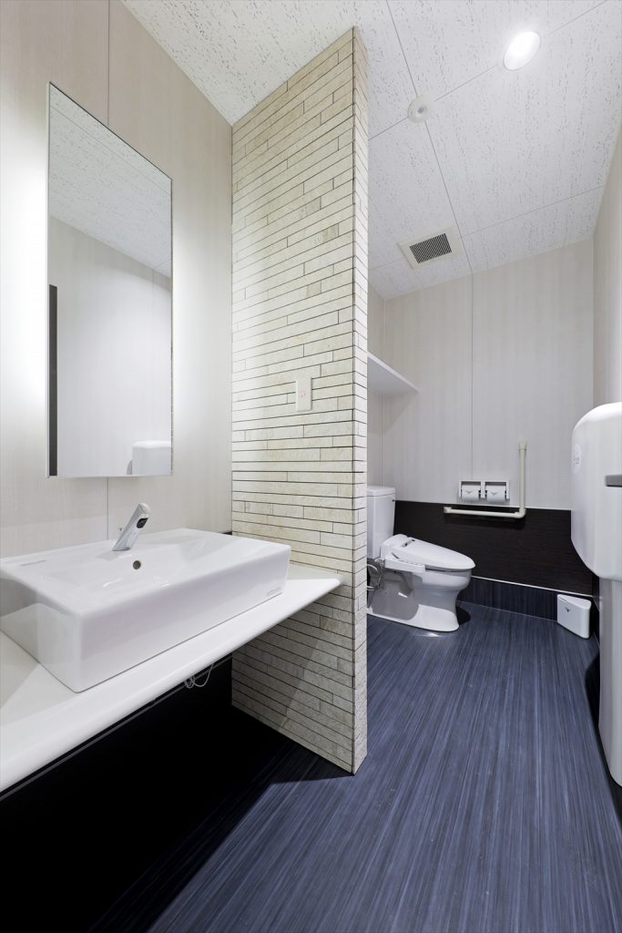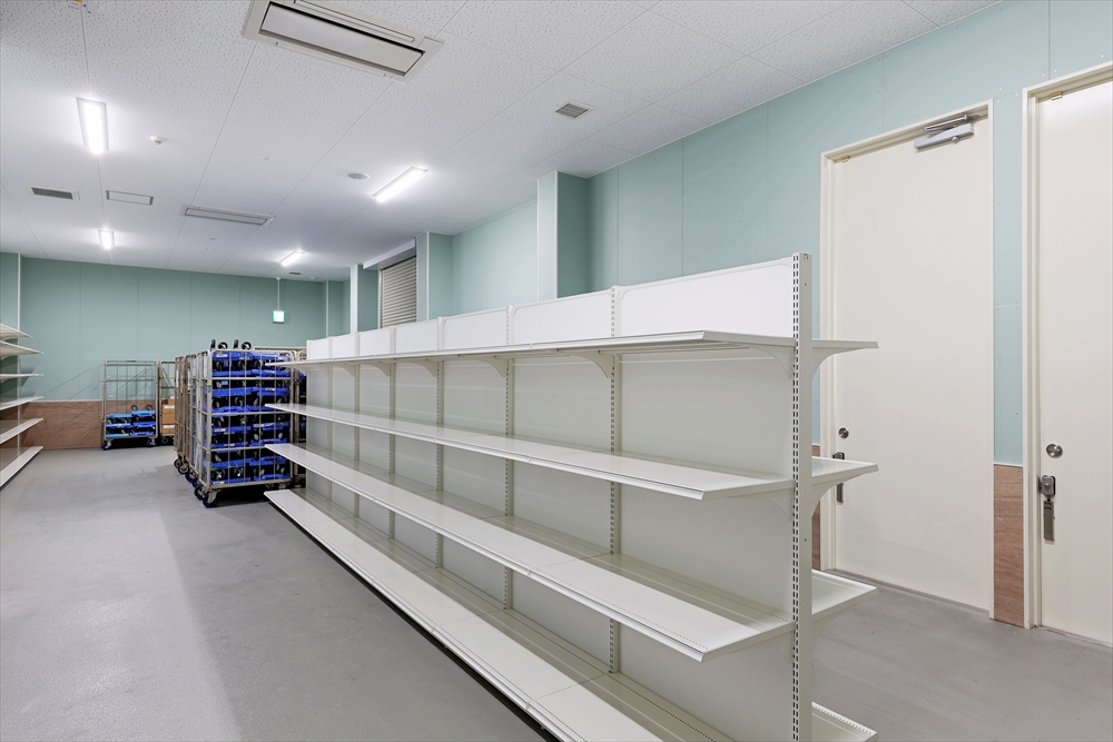 バックヤードのスタッフルームや倉庫も広く、店舗内トイレは身障者用はシャワー付きを採用。