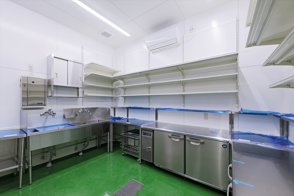 売り場スペースだけでなく、スタッフルーム・更衣室・倉庫・保管用冷蔵冷凍庫・料理作業場などのバックヤードも整備。