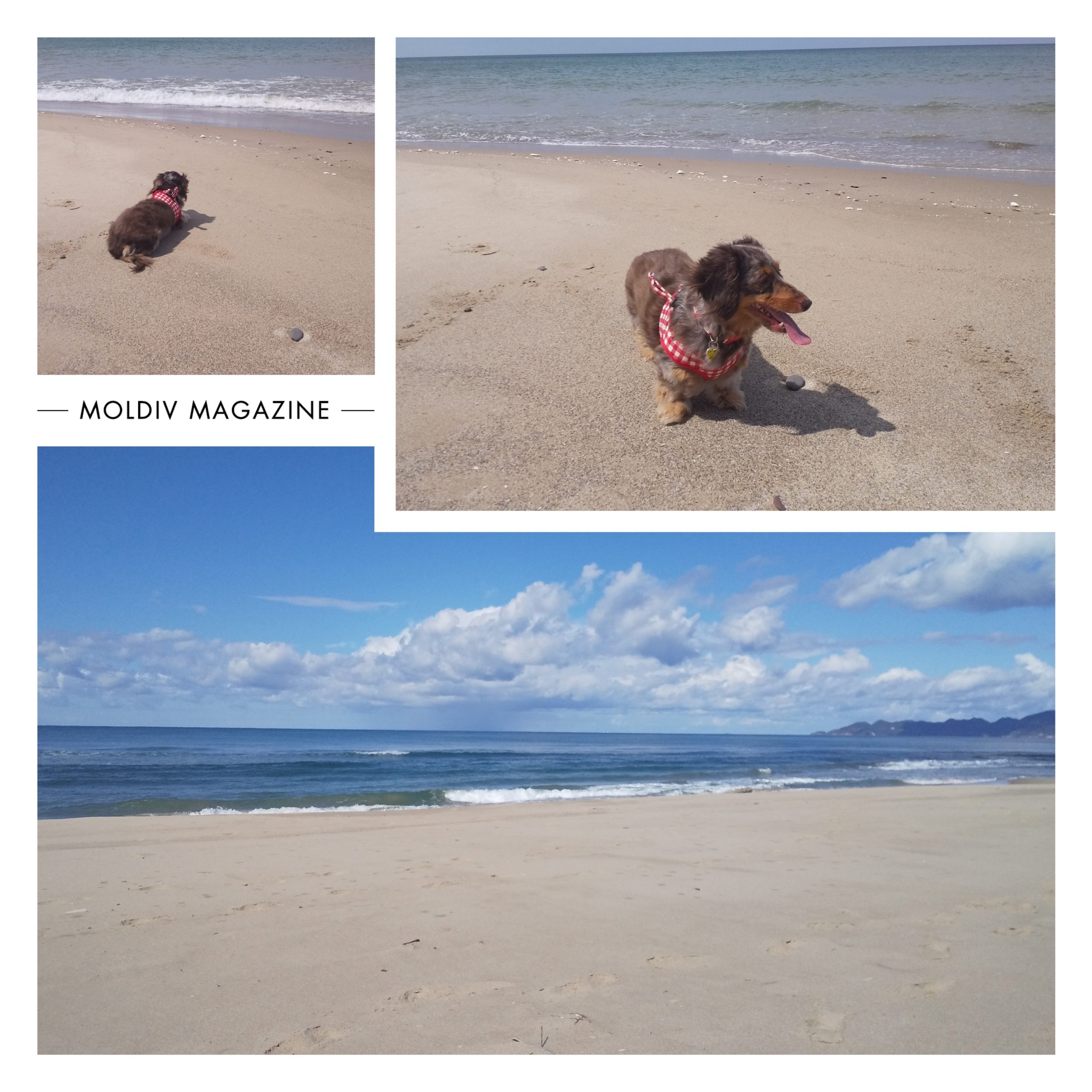 運動不足解消にと自由に放置しましたが、ダックスは足が短い為、砂浜を思うように走れず困惑したみたいです。