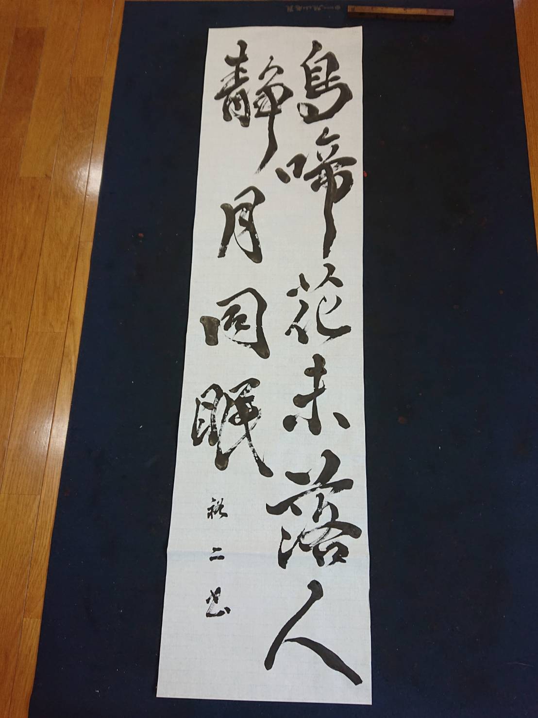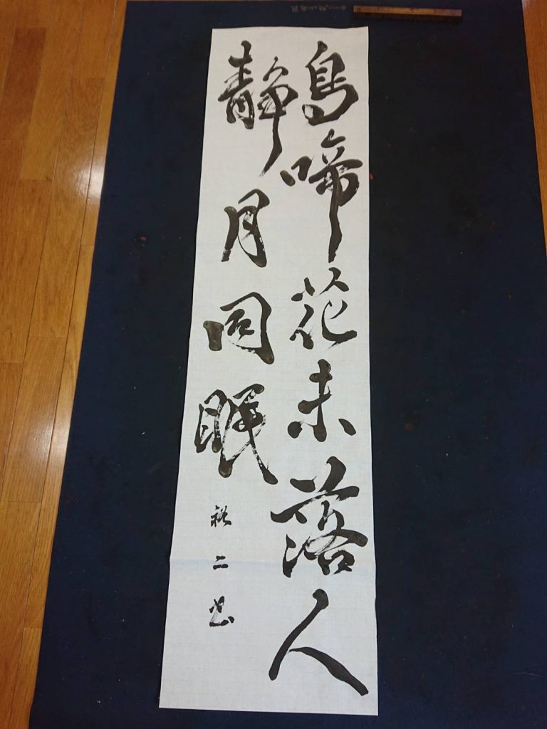通常月は半紙に書くのですが、お正月と8月には少し長いサイズの半切に書きます。