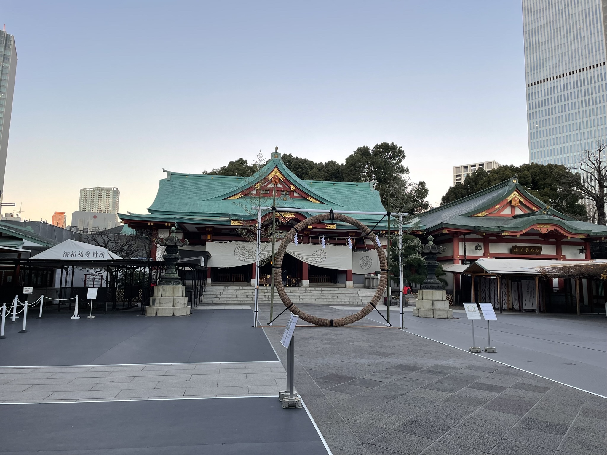 辰年年男です。何回目かは想像にお任せします。昨年12月に東京の日枝神社にお参りというか朝の散歩がてら寄ったら丸いしめ縄が正殿の真正面にありました。