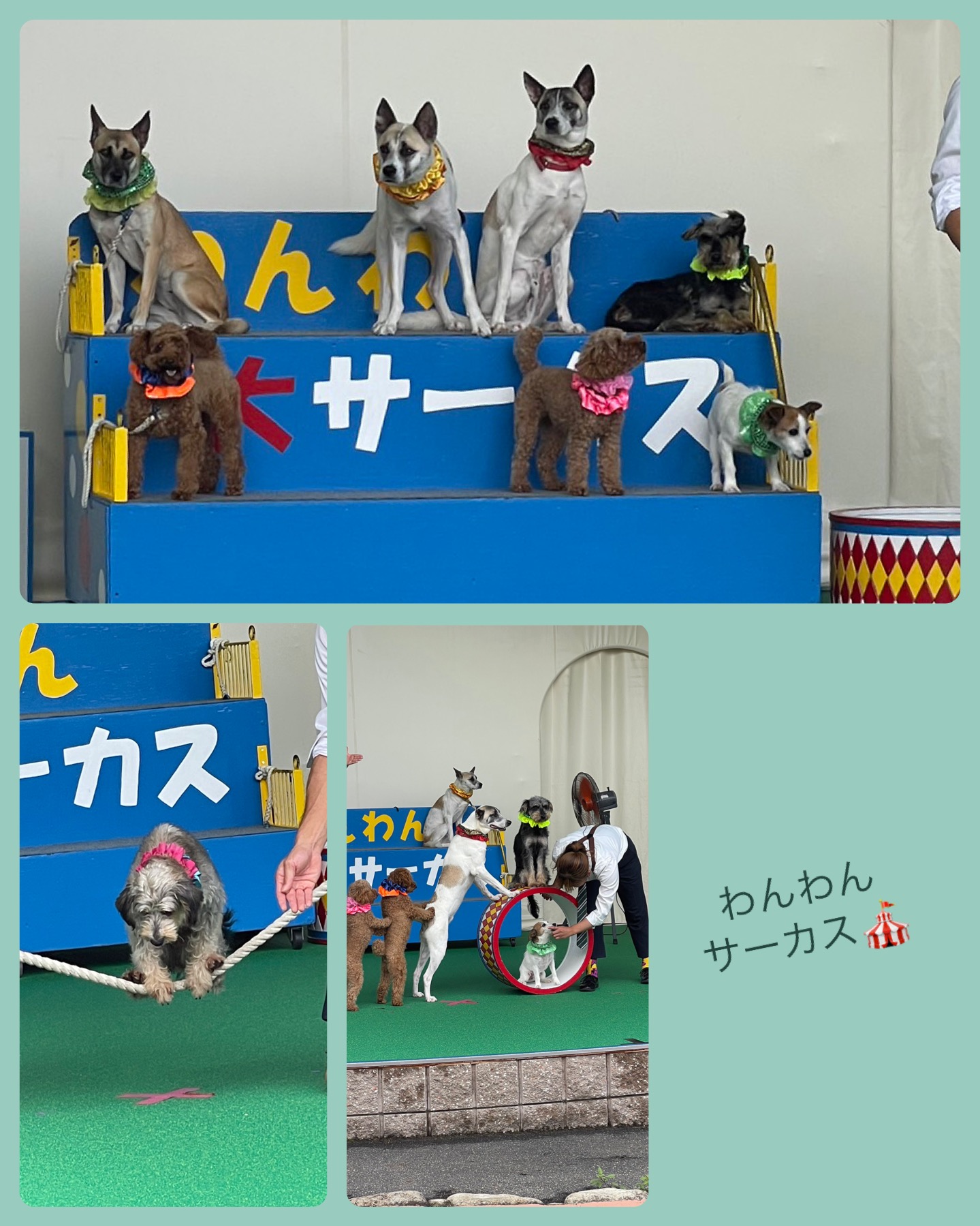 演技の方もワンちゃん達と団員さんコミュニケーションしっかりとれていて、素晴らしいいパフォーマンスをみせてもらいました。中には出来ていないワンちゃんもいましたが・・・(笑)それも愛嬌です!!
